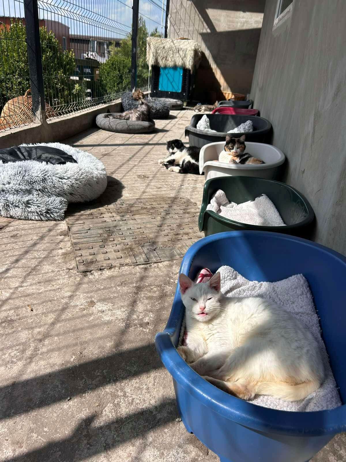 En kijk nou eens naar de foto’s… de katten liggen heerlijk in hun nieuwe mandjes! Kijk naar hun gezichtsuitdrukking.