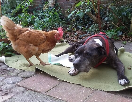 Blinde geredde legkip ontfermt zich over gedumpt haantje (video)