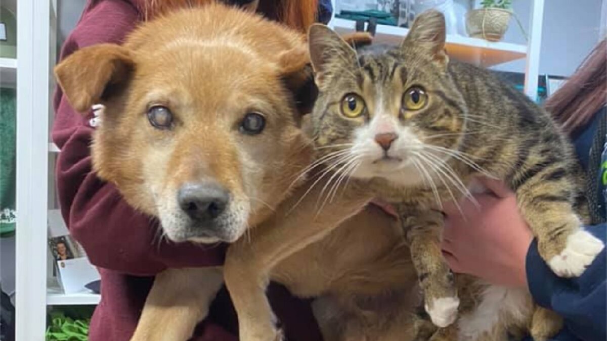 Blinde hond en zijn blindengeleidekat geadopteerd