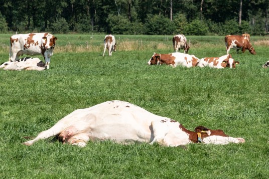 Van de melkkoeien die op hete dagen buiten staan in de provincie Overijssel heeft 74 procent geen toegang tot schaduw. Dit blijkt uit een steekproef van Wakker Dier, in de provincie met de meeste hittestressdagen voor melkkoeien en de meeste koeien in de wei.