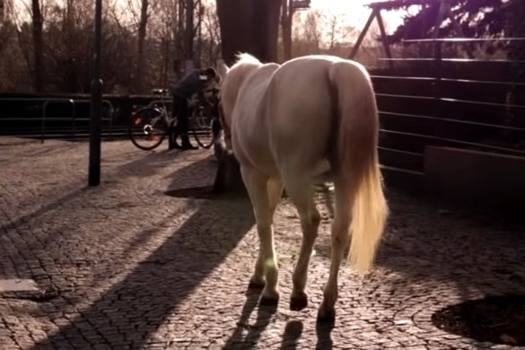 #GNvdD: Paard Jenny maakt dagelijks een wandeling door Frankfurt (video)