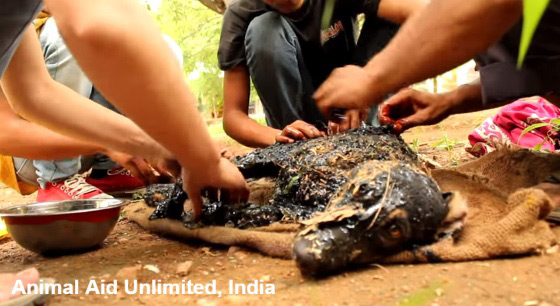 Animal Aid Unlimited is een organisatie die zich inzet voor zwerfdieren in India. Met een opvangcentrum en dierenziekenhuis verleent men hulp aan dieren die het dringend nodig hebben. Zoals de zwerfhond in onderstaande video: deze was vast komen te zitten tussen de spijlen van een ijzeren hek…