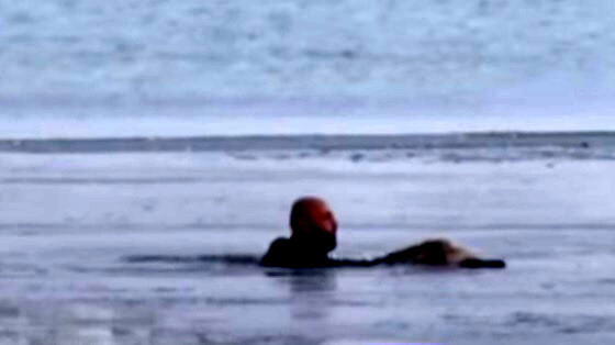 Het ijs was nog te dun voor deze Turkse pup (video)