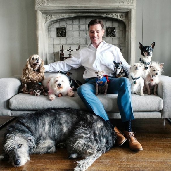 Man adopteert 9 hoogbejaarde honden na overlijden geliefde dwergpincher