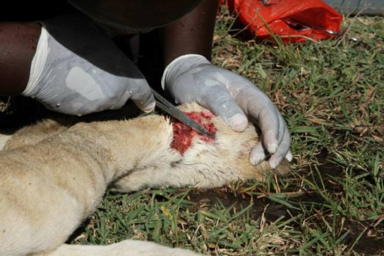 Gewonde leeuwin in Keniaans reservaat verzorgd door dierenartsteam