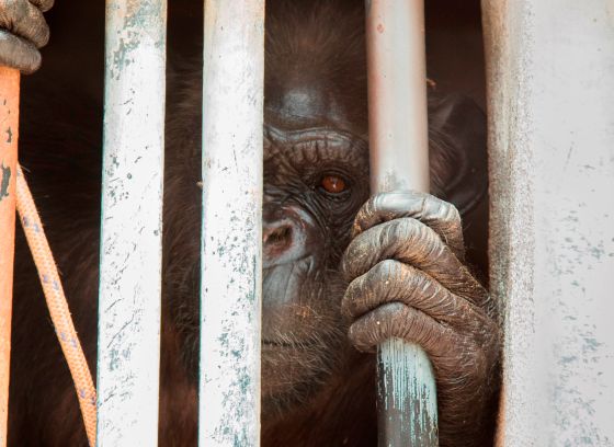 Stichting AAP redt chimpansee Linda van eenzame opsluiting