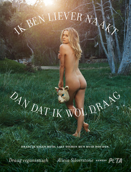 Amsterdam – Naakt in een prachtig groen bos geeft Alicia Silverstone alles bloot in een nieuwe PETA-campagne, gefotografeerd door celebrity-fotograaf Brian Bowen Smith waarin wordt duidelijk gemaakt dat: “Ik ben liever naakt dan dat ik wol draag. Draag veganistisch.” De advertentie, hier verkrijgbaar, is de…