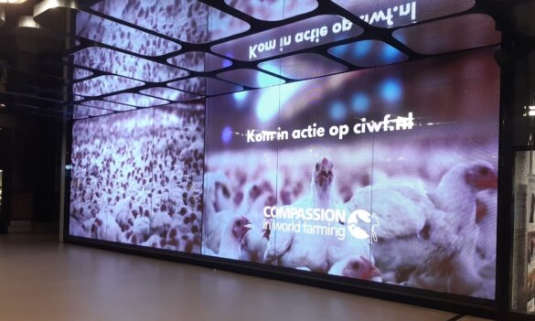 Deze week is de indringende videospot van Compassion in World Farming (CIWF) over het dierenleed en het gezondheidsgevaar van de vee-industrie in acht van de grootste treinstations van Nederland te zien. Op grote videoschermen toont de spot de omstandigheden waarin vleeskippen leven en stelt de…
