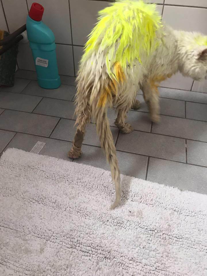 Kat Snow mishandeld en geel geverfd, getuigen gezocht