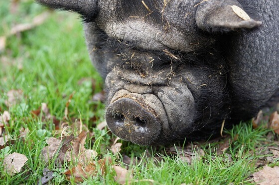 Getuigen gezocht: dood hangbuikzwijn aan betonblok in water