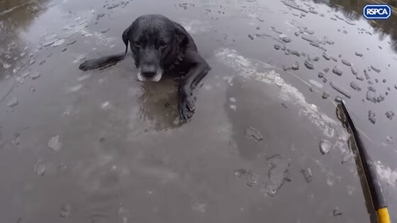 Wanneer het een kwakkelwinter is bestaat het risico dat sloten, plassen en meren wel dichtvriezen, maar dat het ijs veel te dun is om het gewicht van een dier te dragen. Dat merkte ook deze hond in Groot-Brittannië. Gelukkig was er de Britse dierenbescherming RSPCA…
