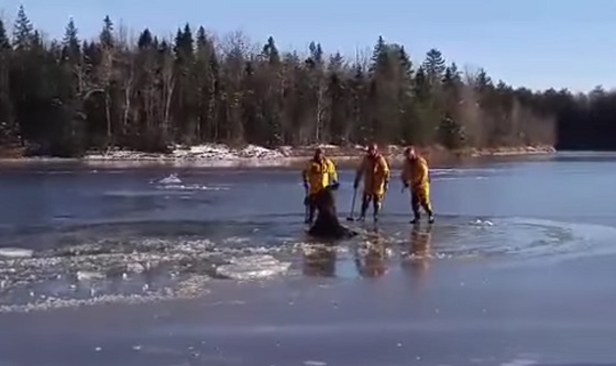 #GNvdD: Door het ijs gezakte eland gered (video)