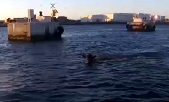 Kalf ontsnapt veetransport en springt in zee