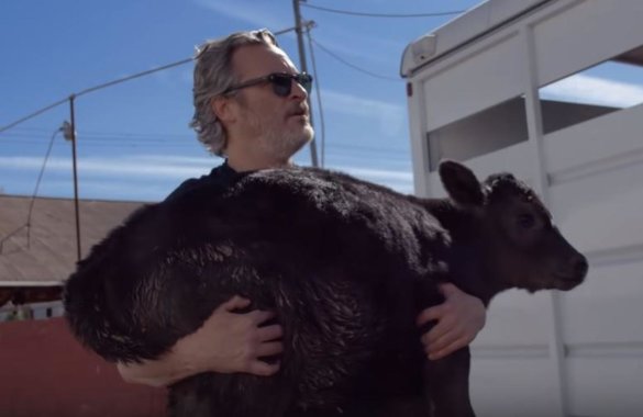 #GNvdD: Acteur Joaquin Phoenix redt koe met kalfje van slacht