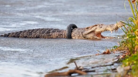 #GNvdD: Krokodil na zes jaar eindelijk uit motorfietsband bevrijd