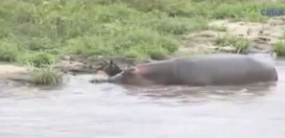#GNvdD: Nijlpaard redt gnoe van krokodil