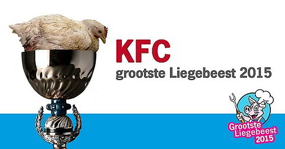 Kentucky Fried Chicken (KFC) is gekozen door het Nederlands publiek tot Liegebeest van 2015. Dit is de ‘prijs’ voor het meest misleidende product, uiting of reclame als het gaat om dierenwelzijn. KFC krijgt de prijs omdat zij op haar websitepagina “Don’t worry, Eat Happy” kakelt dat…