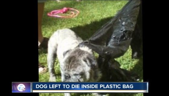 Mopshondje Teddy heeft een engeltje op zijn schouder. Het bejaarde hondje werd vorige week in het plaatsje Gasport, in de Amerikaanse staat New York, in een plastic zak uit een rijdende auto gegooid. Gelukkig was de 12-jarige Malory Steiner getuige van het gebeuren en kwam ze direct…