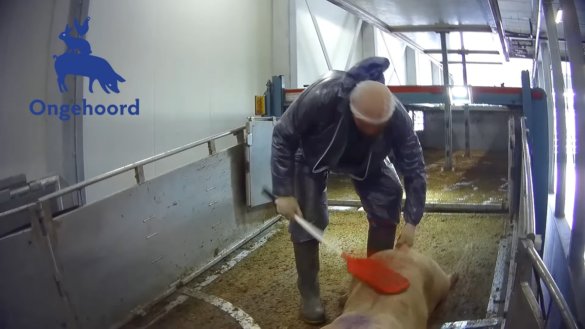 Weer beeld van gruwelijk mishandelde varkens in Nederlands slachthuis