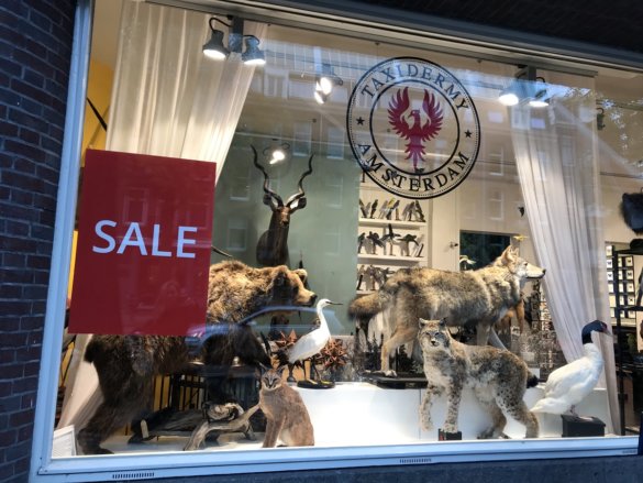 Begin deze week fietste ik heerlijk door Amsterdam en tot mijn zoveelste verbazing viel mijn oog op een winkel vol met dode dieren. Ik kon het bijna niet geloven. Een hele etalage vol met opgezette dieren. Van vogels, vlinders en katachtigen, tot een beer, een…