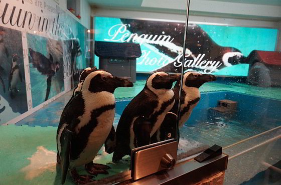 Bar met levende pinguïns in trek in Japan