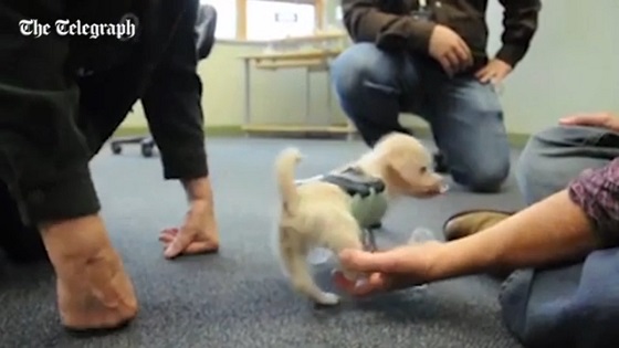 Toen Tumbles uit Athens in Ohio (VS) werd geboren bleek het hondje maar twee pootjes te hebben. Na twee weken werd hij naar een hondenopvang gebracht en de vooruitzichten op een normaal leven leken nihil. Maar dankzij moderne technologie heeft Tumbles toch een kans gekregen…