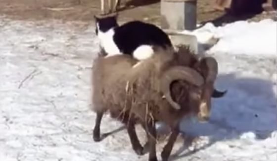 Soms kom je op internet video’s tegen die je móet delen en dit is zo’n video. In deze video is namelijk te zien hoe een kat prinsheerlijk boven op een ram zit en geen moeite voor doet om er af te gaan. Het schaap lijkt…