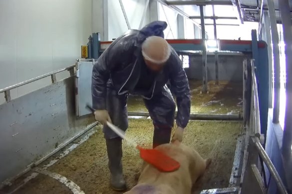 Opnieuw zijn er beelden gepubliceerd waarop te zien is hoe varkens gruwelijk mishandeld worden in een groot Nederlands slachthuis. Te zien is hoe kreupele varkens aan hun staart worden getrokken, zieke dieren worden opgejaagd en varkens worden geslagen om ze uit de vrachtwagen te krijgen….