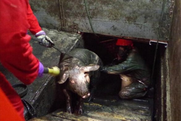 Levend gekookte varkens in slachthuizen zijn geen uitzondering, zo blijkt uit nieuw onderzoek van Varkens in Nood. Uit verslagen van NVWA-inspecteurs blijkt nog steeds dat sommige varkens na de ‘bedwelming’ met CO2 onvoldoende verdoofd zijn en bij bewustzijn in het heetwaterbad op gruwelijke wijze aan…