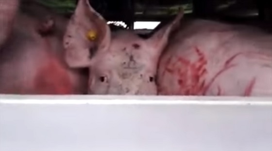 Varkens vechten tot bloedens toe op weg naar slachthuis