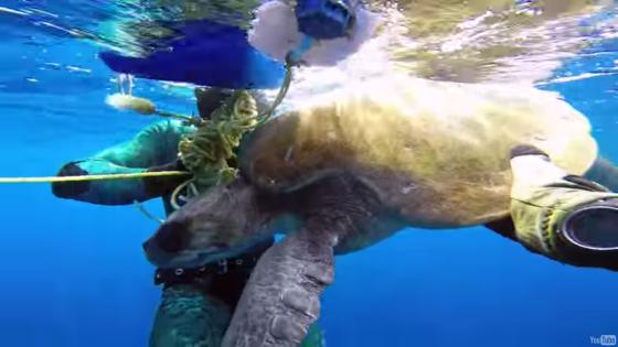 #GNvdD: In touw verstrikte zeeschildpad gered (video)