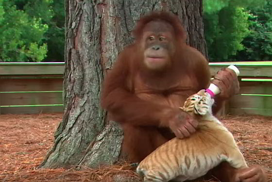 Op internet is een filmpje opgedoken van een orang-oetan die op een aantal tijgerwelpen past en ze de fles geeft. Sinds het filmpje is gepost op social media is het al door miljoenen mensen bekeken. Mensen beschouwen het tafereel als superschattig. Hieronder het bewuste filmpje…