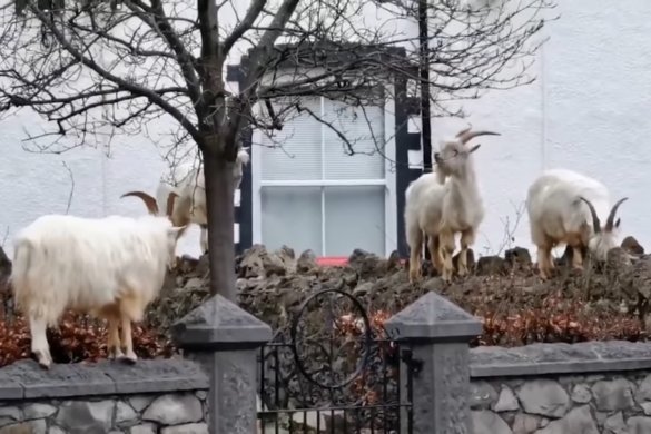Normaal leven ze in de bergen, maar omdat ook de badplaats Llandudno in Wales uitgestorven is door de coronacrisis komen de wilde geiten uit het gebied de bebouwde kom uitgebreid verkennen. Normaal zijn de dieren bang voor mensen, maar nu zien ze hun kans schoon…