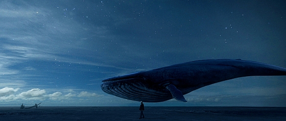 Weer walvis op voorkant schip