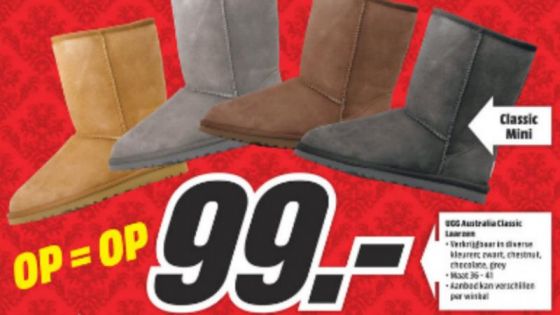 UGG Australia maakt zich druk om de op handen zijnde verkoop van grote partijen UGGs door Mediamarkt. Het bedrijf heeft aangegeven er alles aan te doen om te voorkomen dat Mediamarkt de schoenen ook echt gaat verkopen. UGG Australia waarschuwt klanten dat het misschien wel om nep UGGs gaat…