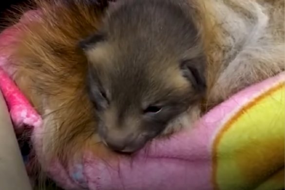 Aanvankelijk werd dit ouderloze vosje aangezien voor een babywasbeer. Het kleintje is in Ontario, Canada, tijdens ijzige kou in een voortuin gevonden en naar Procyon Wildlife Centre gebracht. Het vosje groeide uit tot een respectabele vos en kon samen met een andere vos succesvol uitgezet…