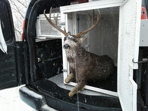 Een hert met een flink gewei in de Amerikaanse staat Wisconsin heeft wel heel erg veel geluk gehad. Het arme dier was in de omgeving van de plaats Lakewood in de vrieskou in een bevroren meer beland, maar kon er zelf niet meer uit komen….