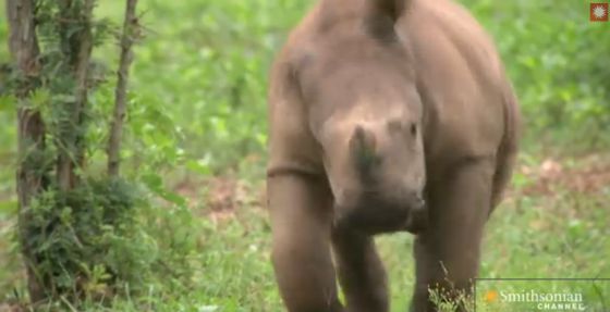 #GNvdD: Jonge witte neushoorn rent met verzorgers (video)