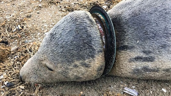 Wekenlange doodstrijd zeehond met frisbee om nek