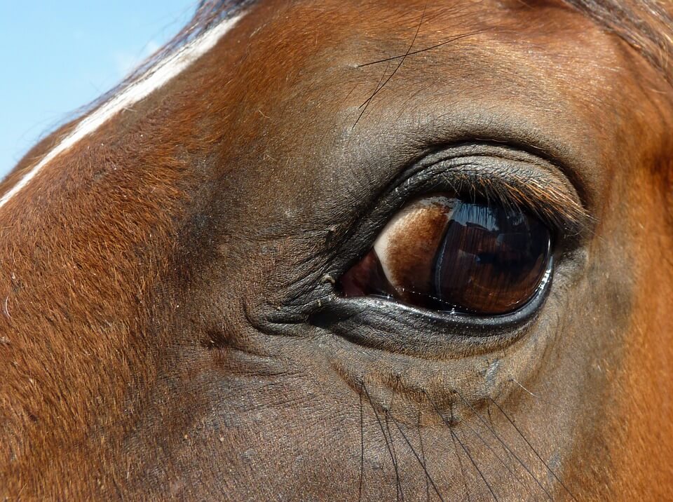 Het zicht van paarden kun je het beste vergelijken met een panoramafoto. Paarden hebben een veel wijder blikveld dan wij en kunnen 350 graden rondom zien. Ze zien wel veel minder scherp en kunnen recht achter zich en recht onder hun neus niets zien. Daarom moet je nooit ineens achter een paard gaan staan, want dan kan hij schrikken. Recht voor zich kunnen paarden scherp stellen, maar verder hebben ze, vergeleken bij ons, een waziger beeld.