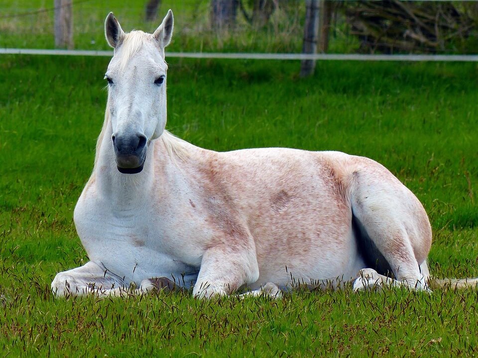 Heb je weleens een paard zien staan met zijn ogen half dicht en met één achterbeen rustend op de teen van de hoef? Dan heb je waarschijnlijk een slapend paard gezien. Paarden kunnen de knieën van hun achterbenen ‘op slot’ zetten om staand te slapen, zonder dat het hen lichamelijke inspanning kost. Ze slapen voornamelijk staand, maar om diep tot rust te komen moeten ze ook enkele uren per dag liggend slapen. Per 24 uur doen ze meerdere korte slaapjes van in totaal 5-7 uur. Minimaal een uur daarvan brengen ze liggend door.