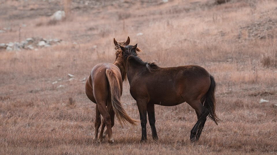 Zoals je hiervoor kon lezen, leven paarden in kuddes en zijn ze goed op elkaar afgestemd. Dat is met name van belang voor de veiligheid. Binnen deze kuddes zie je vaak verschillende groepjes ontstaan van paarden die het heel goed met elkaar kunnen vinden. Je ziet deze paarden vaak dicht naast elkaar grazen en rusten. Mannelijke dieren spelen ook graag met elkaar. Een duidelijk teken van vriendschap is wanneer je twee paarden elkaar ziet ‘groomen’, oftewel kriebelen met de tanden. Meestal kriebelen ze elkaar rond de schoft; dat is het eerste stukje van de rug dat net achter de manenkam ligt.